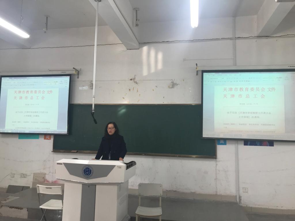 会上,学院党总支负责人组织全体教职工学习了《基层工会会员代表大会条例》、《工会基层组织选举工作条例》《学校教职工代表大会规定》(教育部令第32号)、《天津中德应用技术大学教职工代表大会工作规程(修订稿)》等文件精神,帮助教职工进一步掌握换届选举工作的有关规定和要求。