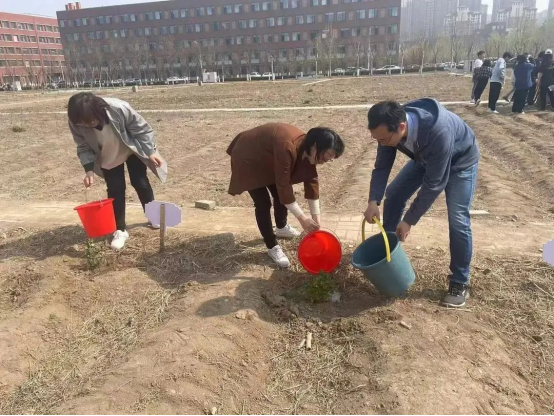 活动现场,大家手拿铁锹水桶和种花工具,分工合作,相互配合,挥锹挖土、撒种培土,充分发扬了党员干部的团结互助、无私奉献的精神。经过大家的努力,一朵朵鲜花迎风而立,一株株绿植饱饮碧源,春风十里不及一抹绿意,大家以实际行动传递绿色、孕育生机。