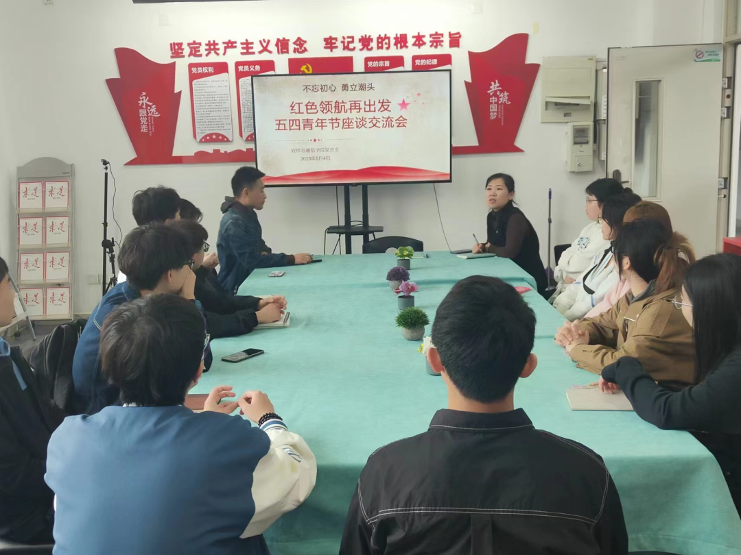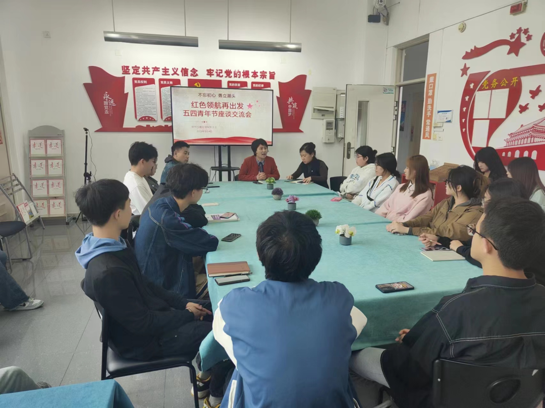 为深入开展学习贯彻习近平新时代中国特色社会主义思想主题教育,全面贯彻落实习近平总书记关于青年工作的重要思想,进一步加强党对青年工作的领导,激励青年大学生勇担时代重任、不负青春年华。5月4日,学院党总支副书记张林琳、冯妍,学生党支部书记王峰及红色领航社团成员参加了五四青年节座谈活动。