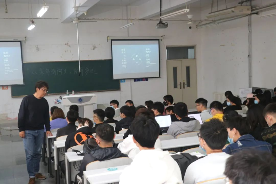 讲座伊始,李博首先从自身出发,讲述了自己从学生时期成为院学生会主席,到毕业后进入企业工作,再到后来的自主创业,一步步走到现在的种种经历,并且对一路上遇到的老师、同事